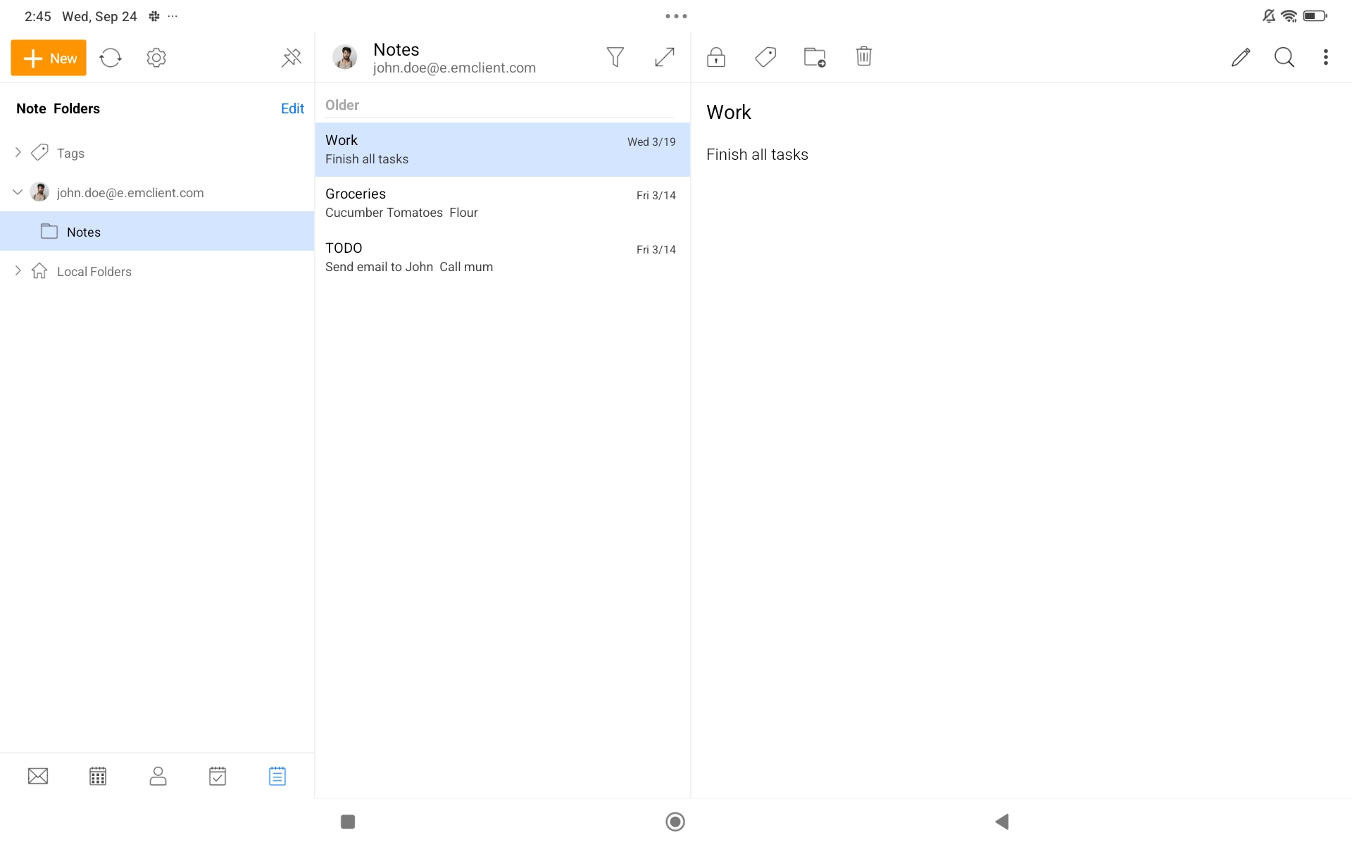 Capture ideas and information on the go with integrated note-taking. For Exchange and IceWarp accounts you can also synchronize them across devices.
