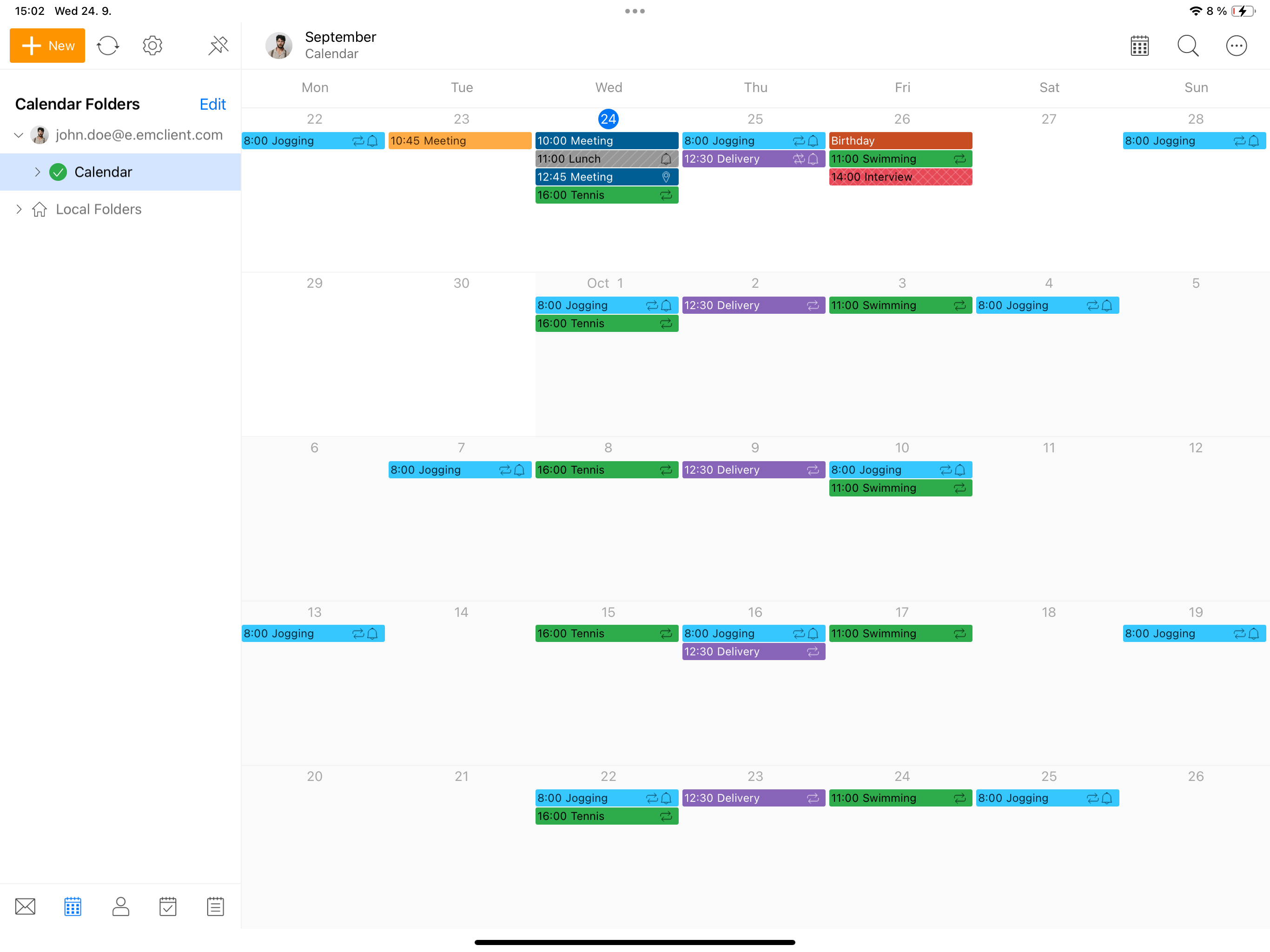 The eM Client mobile app now offers full support for both local and synchronized calendars, keeping your events and schedules at your fingertips wherever you are. You can accept meeting invitations straight from your messages, create new appointments, and explore your agenda in multiple layouts - including week, month, agenda, and a special Three-Day view for quick access to what’s ahead.