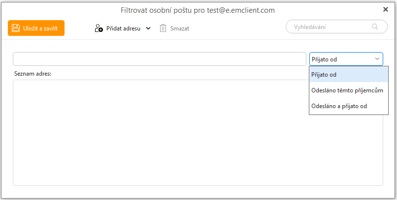 Každá kategorie zde může být ručně nastavena – je také možné omezit kategorizaci nad rámec výchozího pravidla („Odesláno a přijato od“) pouze na „Přijato od“ nebo „Odesláno těmto příjemcům“