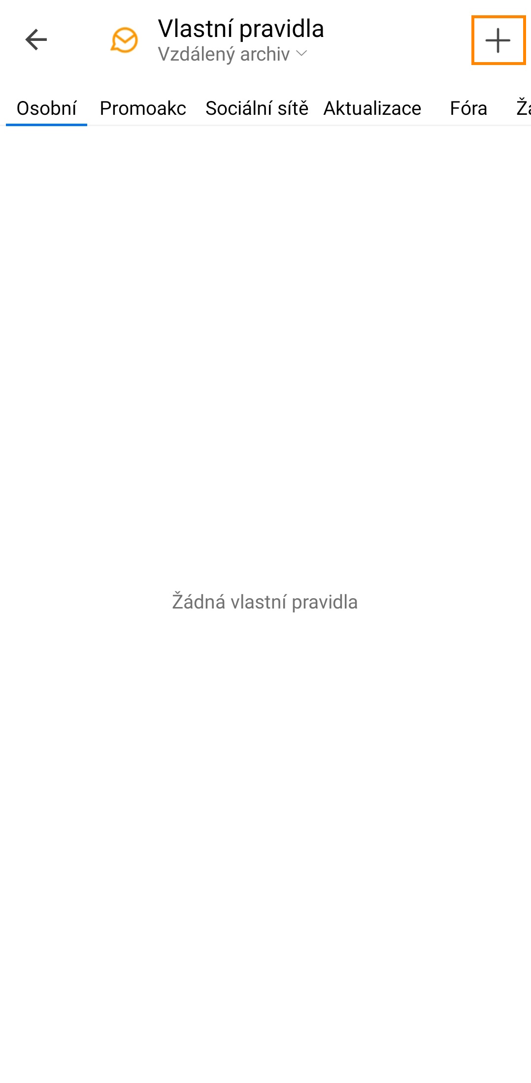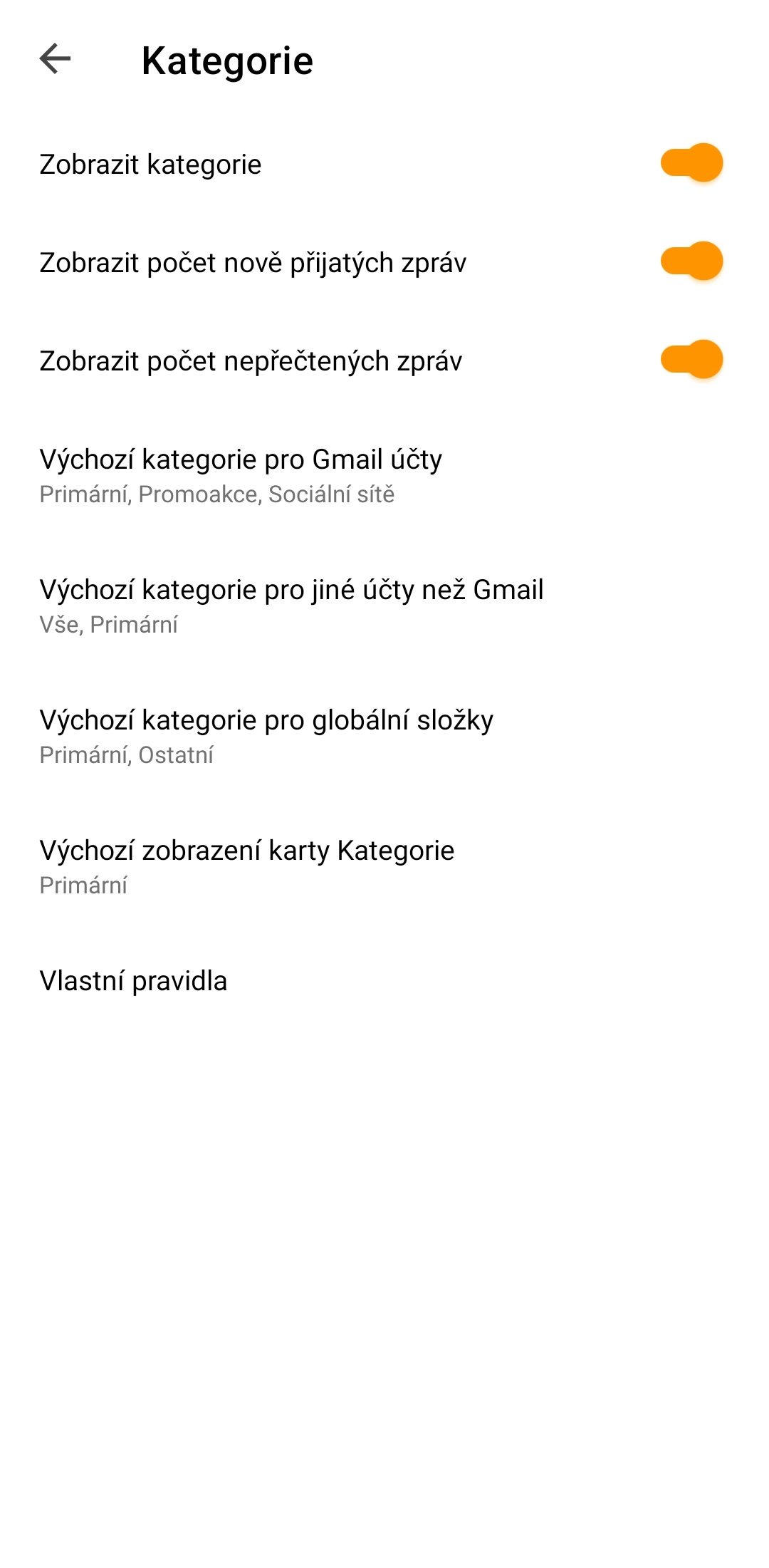 Poznámka:: U Gmail účtů nelze zobrazit vlastní pravidla kategorií.