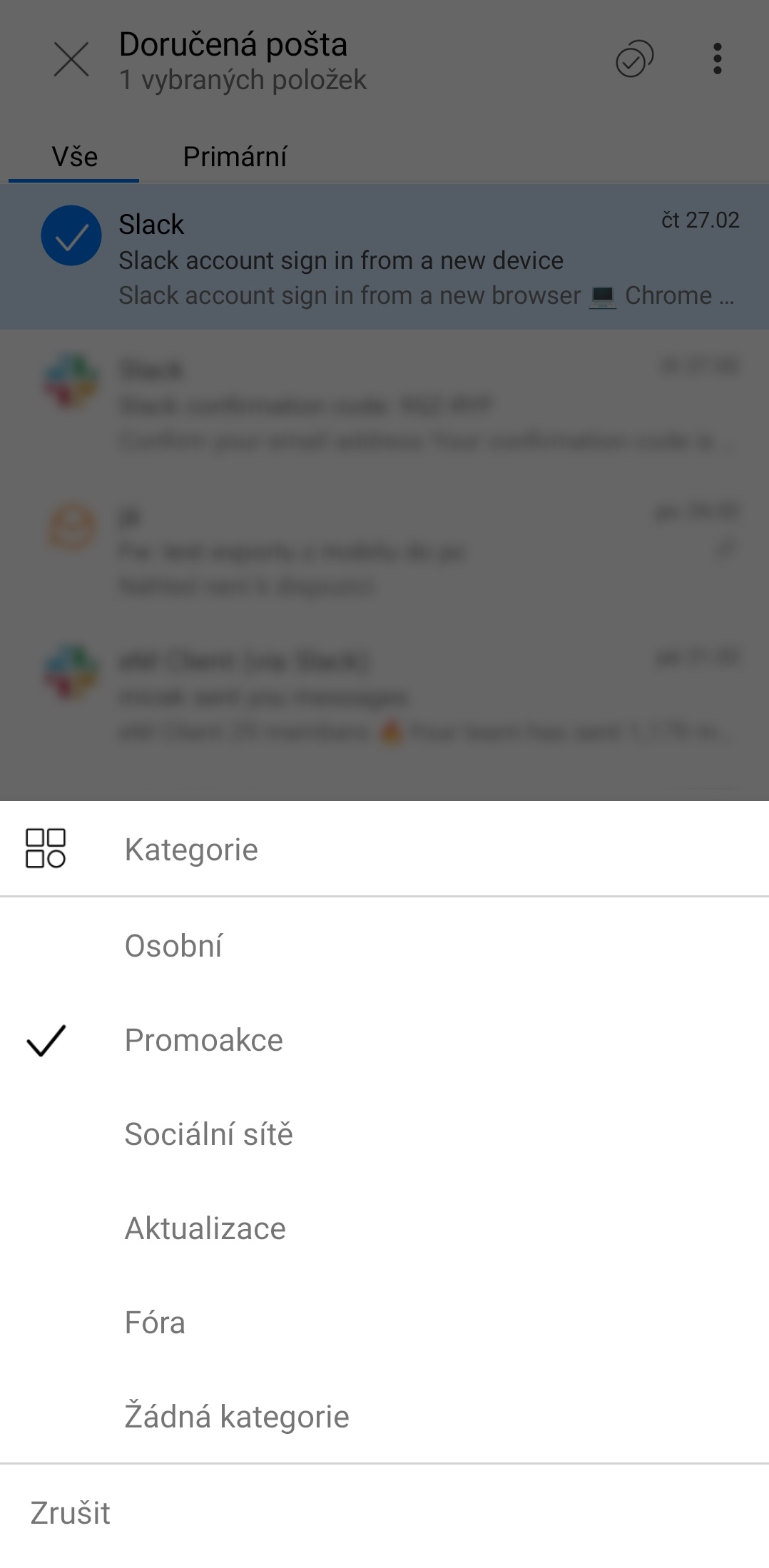 A jak například přesunout e-maily z kategorie Promoakce do záložky Primární?