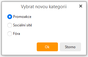 V případě kombinovaných záložek (Primární, Ostatní nebo Vše) se nejdříve otevře vyskakovací okno s výzvou k upřesnění cílové kategorie:
