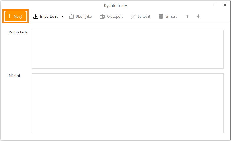 Klikněte na +Nový pro vytvoření nového Rychlého textu: