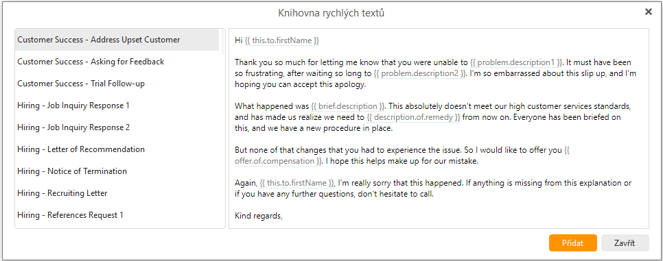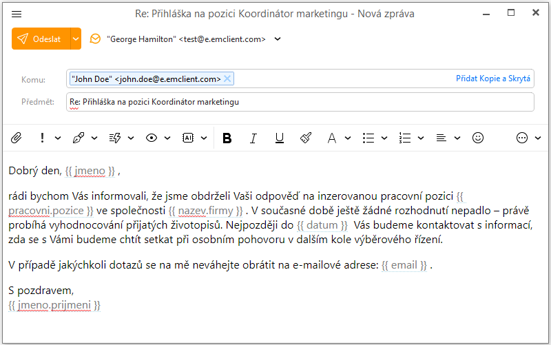 Zástupné texty sice musíte před odesláním ručně upravit, ale hodí se, zejména když je potřeba přidat trochu osobního přístupu.