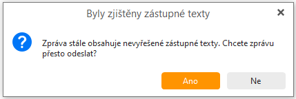V případě, že zapomenete zástupné texty přepsat, zobrazí se varovná hláška. Takže se nemusíte obávat, že byste omylem odeslali nedokončený e-mail:
