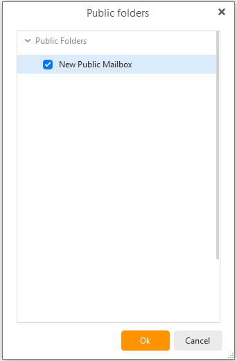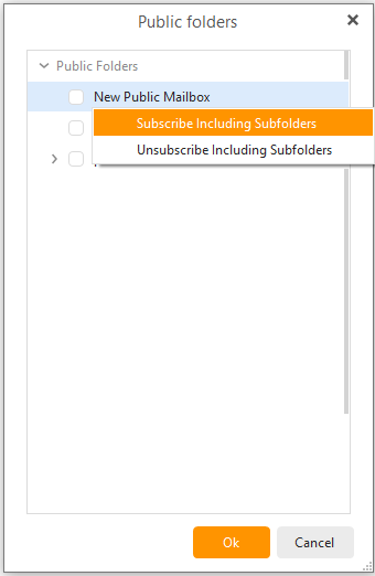 After selecting the public folders you want to subscribe to, click the "Ok" button to save your changes.