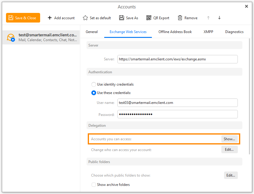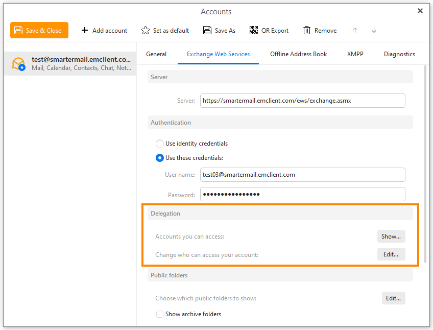 access SmarterMail accounts or public folders in the eM Client app. This is handy for team collaboration or when