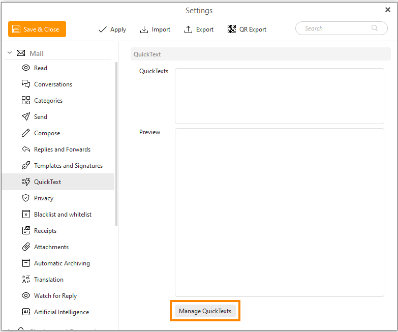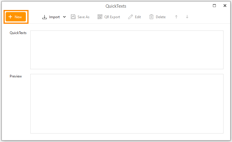 Click the Manage QuickTexts button to open the QuickTexts manager:
