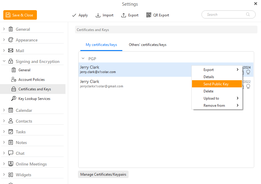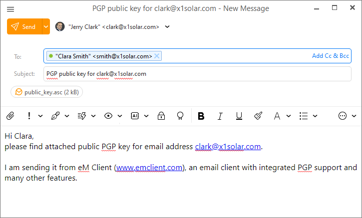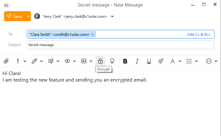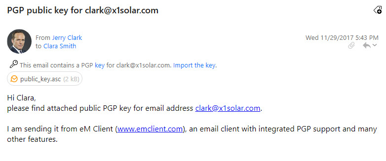 Clara import the key and from now on, she can send Jerry encrypted emails.